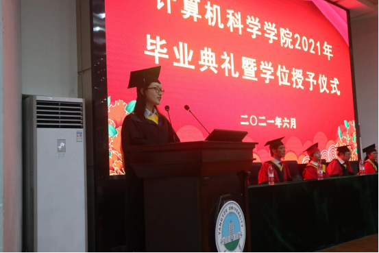 伴随着温馨的暖场视频,典礼正式开始,全体成员起立奏唱国歌。学院党委副书记颜学俊宣读了2021届优秀毕业生表彰文件,今年学院共有24名本科生和5名研究生被评为“长江大学优秀毕业生”。